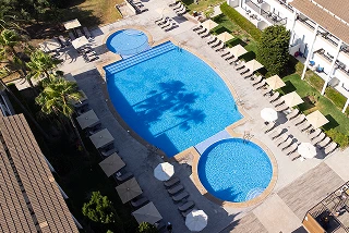 Zwei Pools für Erwachsene und ein Kinderbecken mit Liegestühlen und Sonnenschirmen für entspannte Momente nur wenige Schritte von Ihrem Zimmer entfernt.